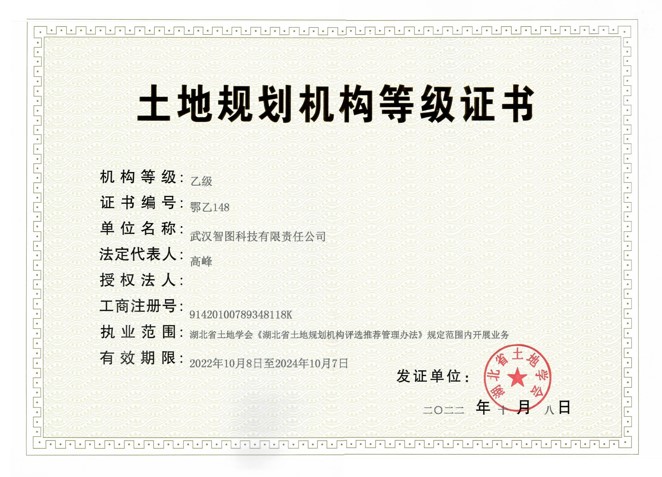 土地规划机构等级证书