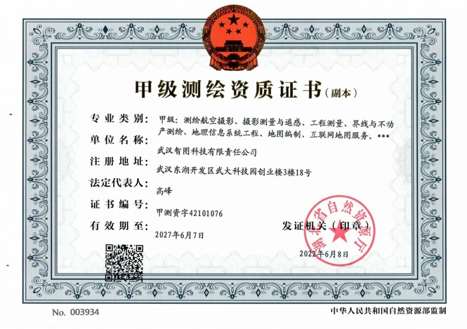 甲级测绘资质证书