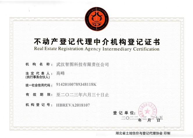不动产登记代理中介机构证书